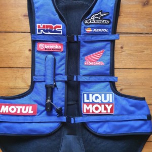 Ich bepatche Dir die Weste nach Deinen Wünschen. Alles was auf eine Kombi draufgenäht werden kann, kann ich Dir auch auf die Weste nähen. Das ist natürlich etwas komplizierter wegen des Airbags, aber möglich. Ich bin offiziell zertifiziert von Helite für alle Arbeiten an den Helite Produkten. Deine Weste ist personalisierbar und/oder Du erfüllst die Vorgaben für Deine Rennserie (Sponsoren). Neben der fest angenähten, gibt es auch eine Klettvariante, die für wechselnde Sponsorenpatches, Kennzeichnung bei Fahrschulen, Instruktoren…usw. geeignet ist.